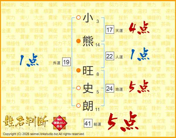 小熊旺史朗さんの総運は41画の5点!