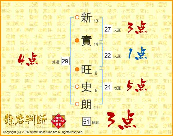 新(13画)實(14画) 旺(8画)史(5画)朗(11画)