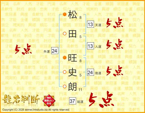松田旺史朗さんの総運は37画の5点!