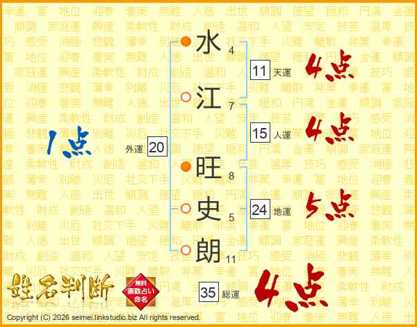 水江旺史朗さんの総運は35画の4点!