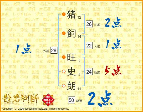 猪飼旺史朗さんの天運は26画の2点!