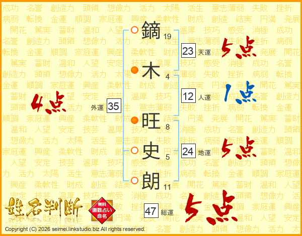 鏑木旺史朗さんの総運は47画の5点!