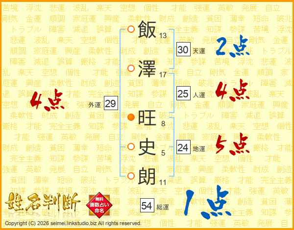飯澤旺史朗さんの総運は54画の1点!