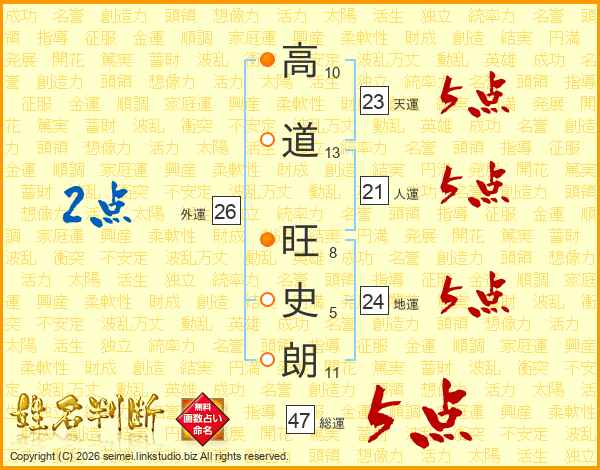 高道旺史朗さんの総運は47画の5点!