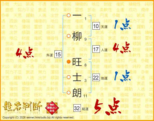 一柳旺士朗さんの総運は32画の5点!