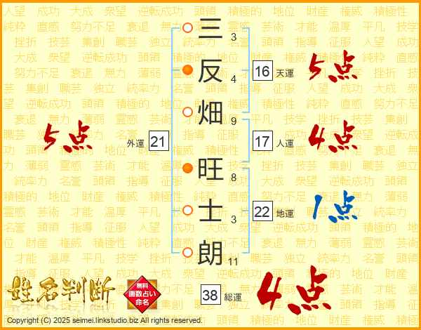 三(3画)反(4画)畑(9画) 旺(8画)士(3画)朗(11画)