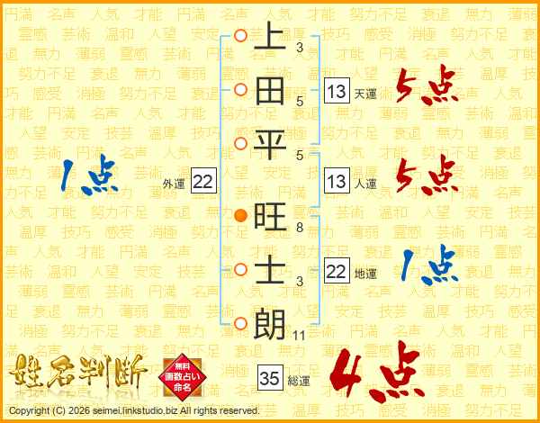 上田平旺士朗さんの天運は13画の5点!