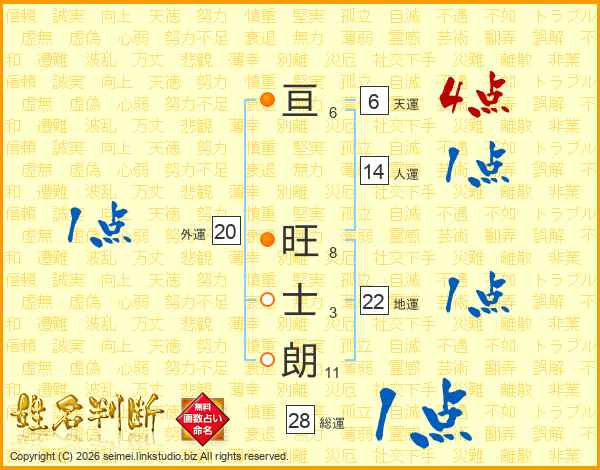 亘旺士朗さんの総運は28画の1点!