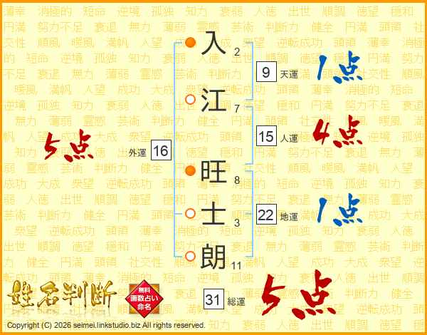 入(2画)江(7画) 旺(8画)士(3画)朗(11画)