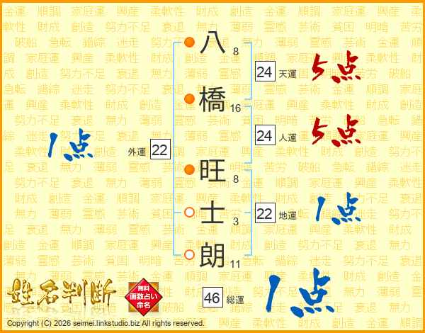 八橋旺士朗さんの天運は24画の5点!