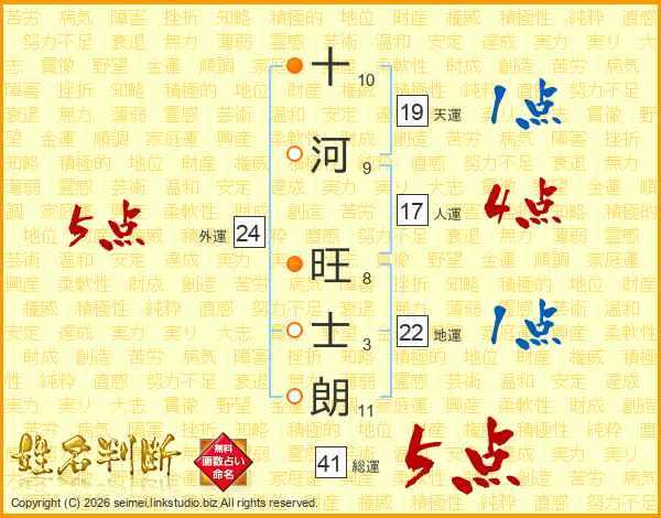 十河旺士朗さんの総運は41画の5点!