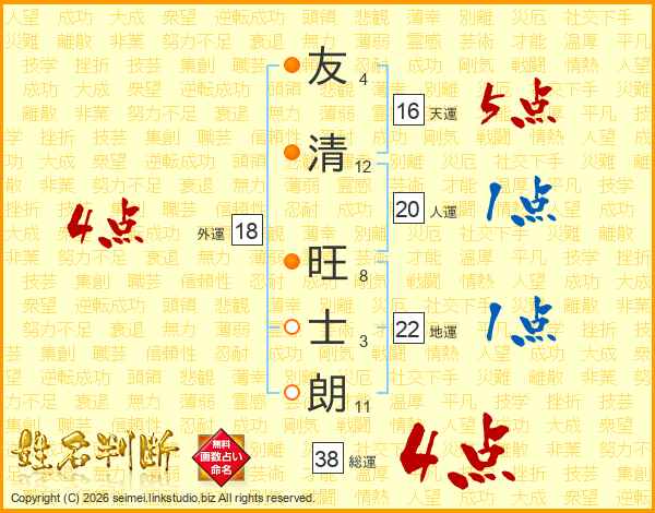 友清旺士朗さんの総運は38画の4点!