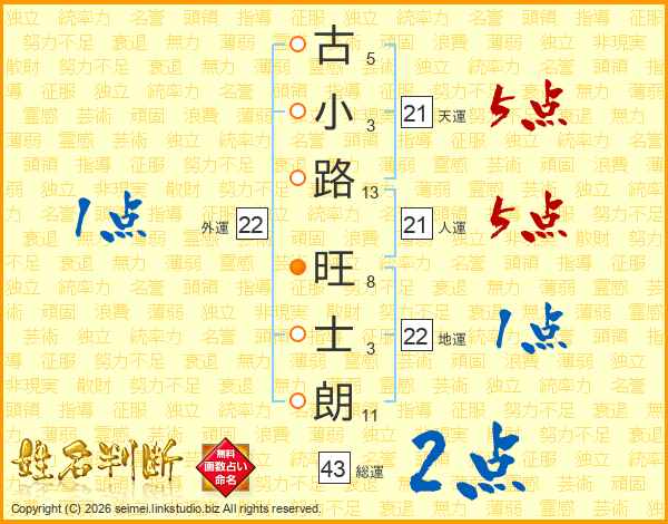 古小路旺士朗さんの総運は43画の2点!