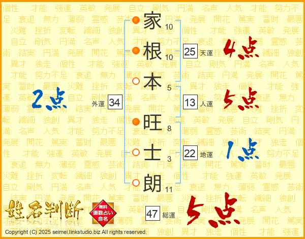 家(10画)根(10画)本(5画) 旺(8画)士(3画)朗(11画)