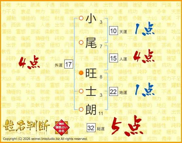 小尾旺士朗さんの総運は32画の5点!