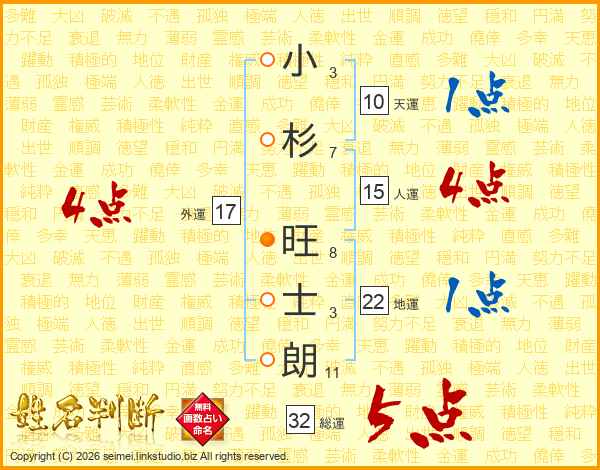 小杉旺士朗さんの総運は32画の5点!