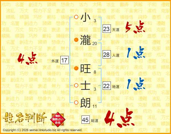 小瀧旺士朗さんの総運は45画の4点!
