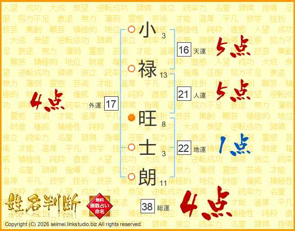 小(3画)禄(13画) 旺(8画)士(3画)朗(11画)