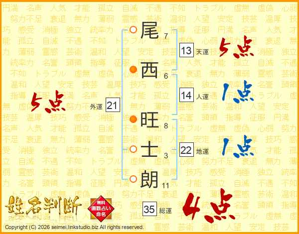 尾西旺士朗さんの総運は35画の4点!
