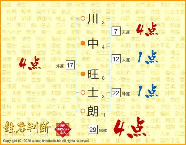 川中旺士朗さんの外運は17画の4点!
