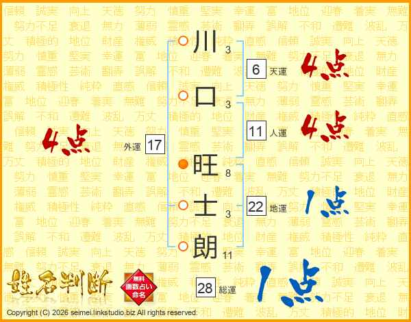 川口旺士朗さんの人運は11画の4点!