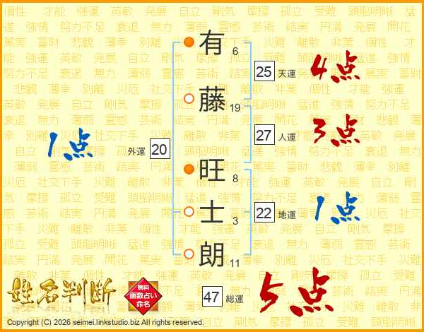 有(6画)藤(19画) 旺(8画)士(3画)朗(11画)
