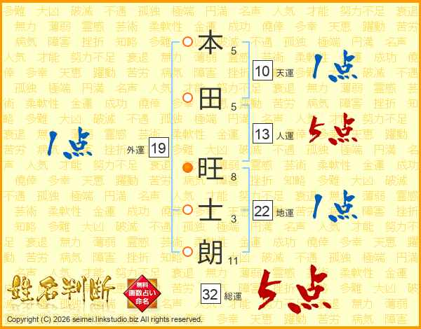 本田旺士朗さんの総運は32画の5点!