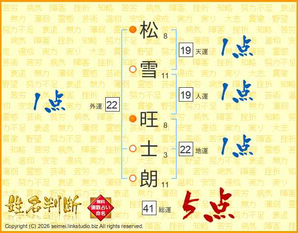 松雪旺士朗さんの総運は41画の5点!