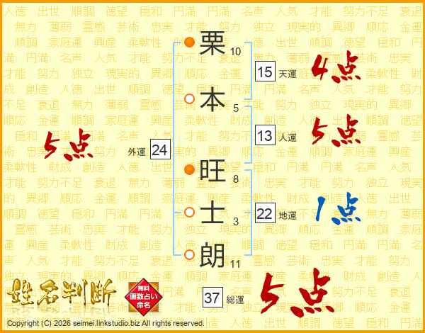 栗本旺士朗さんの総運は37画の5点!