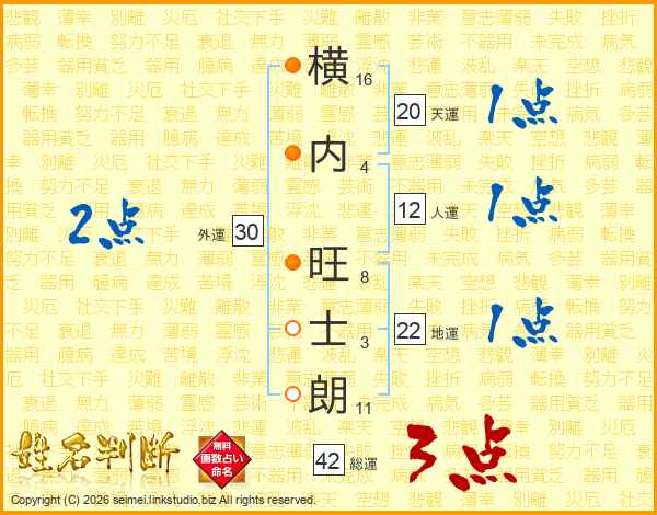 横(16画)内(4画) 旺(8画)士(3画)朗(11画)