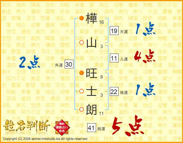 樺(16画)山(3画) 旺(8画)士(3画)朗(11画)