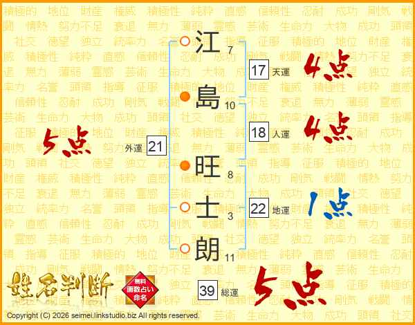 江島旺士朗さんの総運は39画の5点!