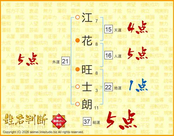 江(7画)花(8画) 旺(8画)士(3画)朗(11画)