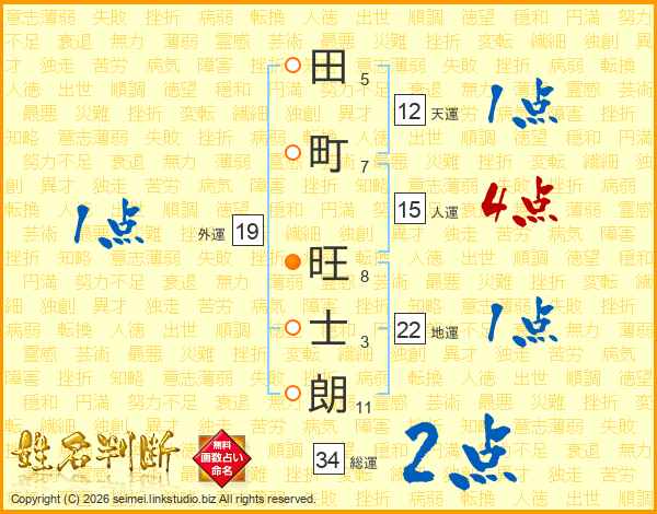 田町旺士朗さんの総運は34画の2点!