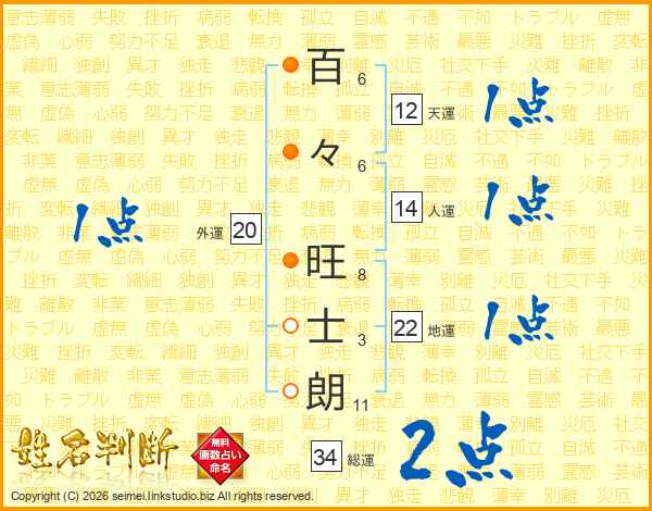 百々旺士朗さんの総運は34画の2点!