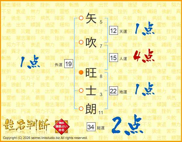 矢吹旺士朗さんの総運は34画の2点!