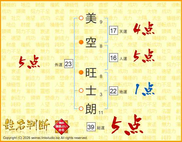 美空旺士朗さんの総運は39画の5点!