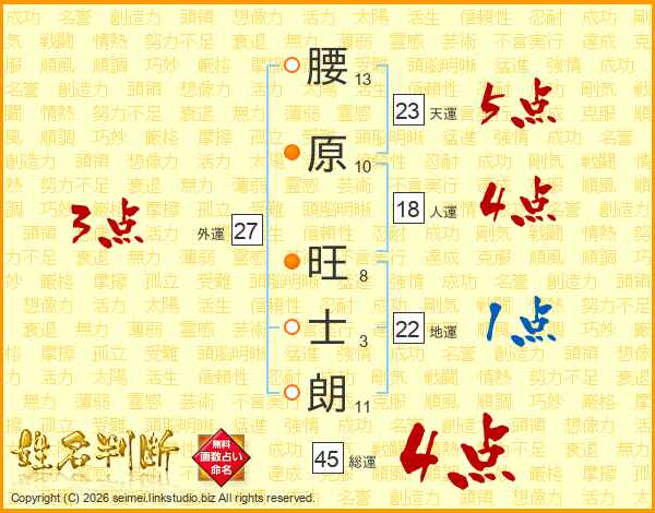 腰原旺士朗さんの総運は45画の4点!