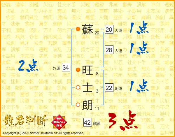蘇(20画) 旺(8画)士(3画)朗(11画)