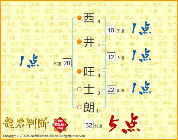 西(6画)井(4画) 旺(8画)士(3画)朗(11画)