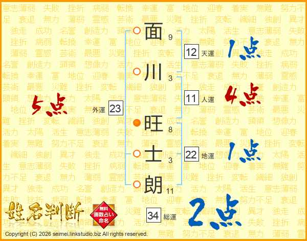 面川旺士朗さんの人運は11画の4点!
