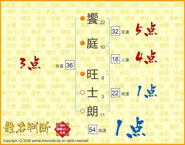 饗庭旺士朗さんの天運は32画の5点!
