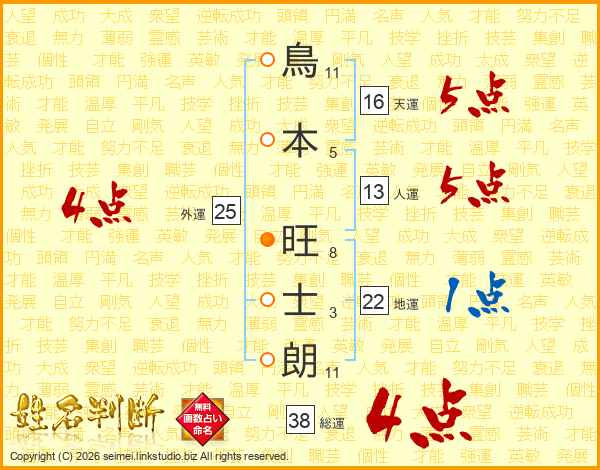 鳥本旺士朗さんの総運は38画の4点!