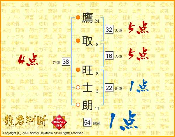 鷹取旺士朗さんの外運は38画の4点!