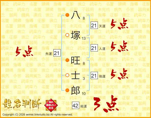 八(8画)塚(13画) 旺(8画)士(3画)郎(10画)