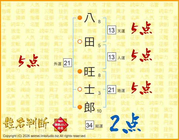 八田旺士郎さんの天運は13画の5点!
