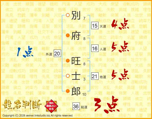 別府旺士郎さんの総運は36画の3点!