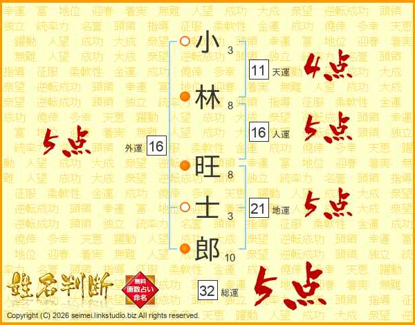 小林旺士郎さんの総運は32画の5点!