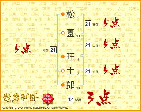 松園旺士郎さんの天運は21画の5点!