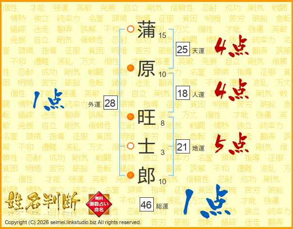 蒲(15画)原(10画) 旺(8画)士(3画)郎(10画)